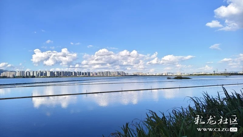 湖面浩渺,波光粼粼,城市建筑與自然景觀相映成趣。